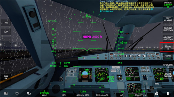 3. 校正角度后会默认切换到飞机机尾视角,第一步要调整襟翼。按住右侧的FLAPS按钮,选择第一档位。