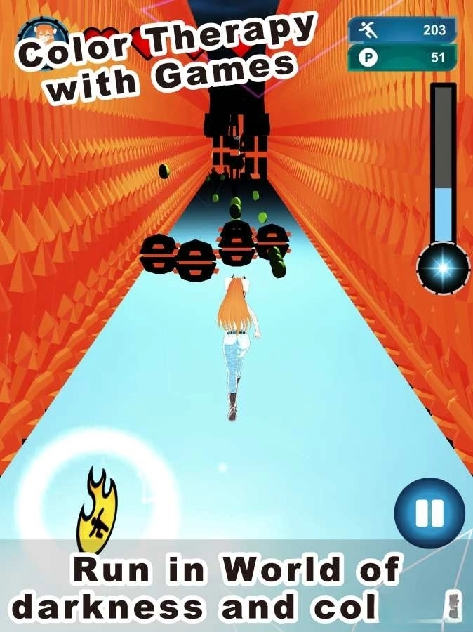 这是一款名为《夜跑女孩游戏》的酷跑类休闲游戏,玩家需要根据遇到的不同障碍物,触发原地停留、两段跳、藏身、踩踏、冲刺等多种动作。到了游戏后期,场景会变得像迷宫一样复杂,箭头指示的方向可不一定就是正确的路径哦。