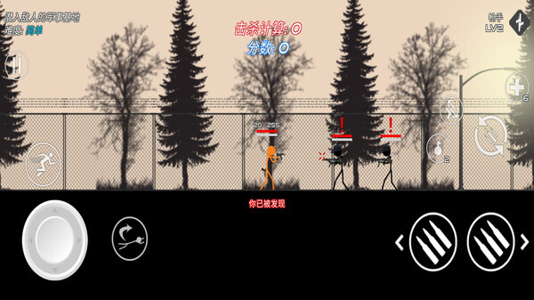 1、选关卡进入,用虚拟摇杆控角色移动,躲避敌人攻击,找掩体藏身形。