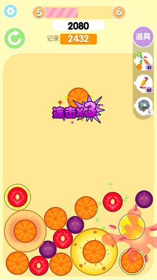 1、后期一定要等每一步水果动完了再放下一个,不然自己的水果下去了目标水果却跑了就很尴尬。