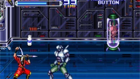 美版,在美版的变身忍者中,有六个操作键可供使用,轻拳、轻脚、重拳、重脚、跳跃和变身。要释放威力无比的大招,只需同时按下任意两个拳脚键,让你的忍者尽情发威。