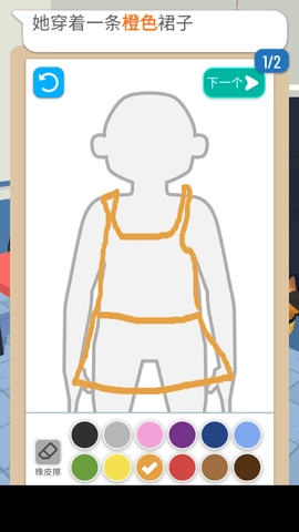 接着要根据描述对应画图“她穿着一条橙色裙子”。