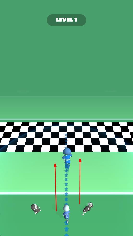 1、进入LEVEL1关卡后,操控蓝色角色在绿色赛道前进,通过拖动调整移动方向,开启竞技跑酷挑战。