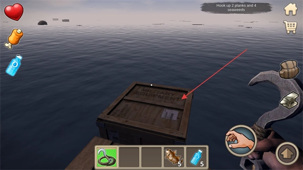 4、钩取木箱类物资,打开后能获得更多资源,助力推进生存进度。