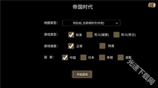 2、能够自主挑选地图类型、游戏类型、游戏速度以及国家阵营
