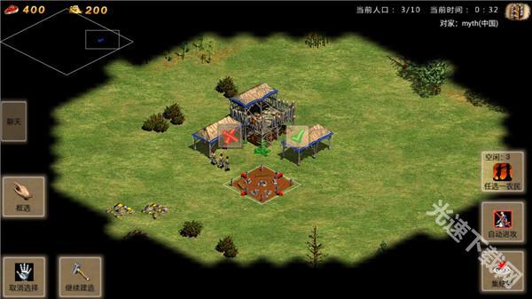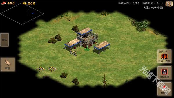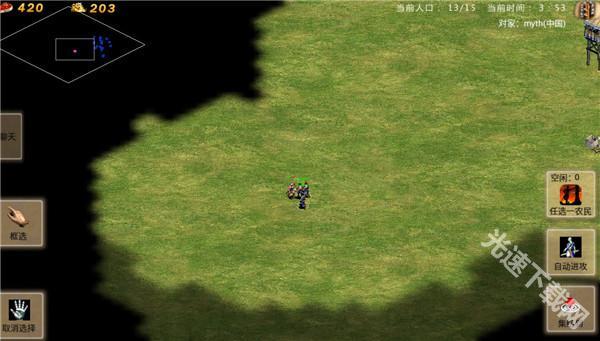 3、进入游戏后,既可以单独选中农民,也可以点击框选按钮,选择指定范围内的农民。