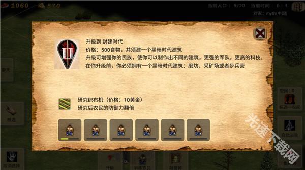 6、点击市政厅后,能够建造农民,并且点击对应图标就能升级科技。