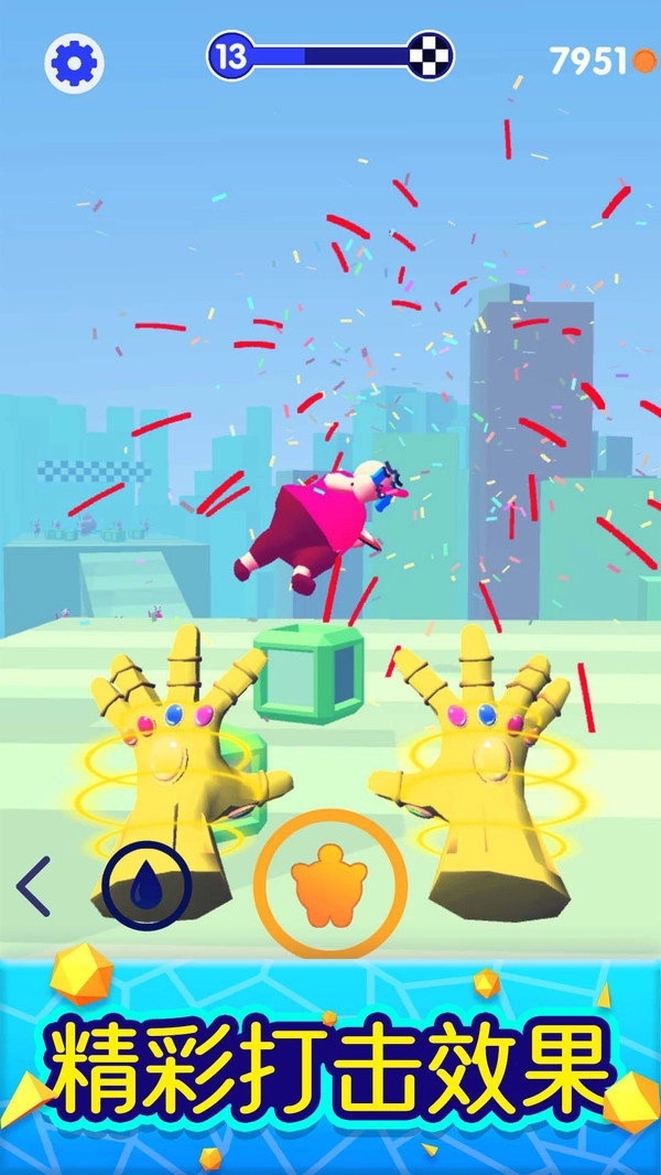 游戏里有多种魔力手套装备,你甚至能同时拥有两只灭霸手套。卡通风格的画面加上呆萌的敌人,让你不管何时何地都能轻松游玩。