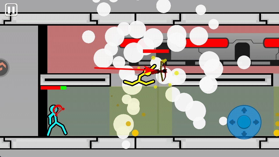 你需要操控那个手持竖琴的蓝色火柴人,利用竖琴的攻击效果,根据自身所处的位置和采取的行动,找准合适的时机发动攻击。
