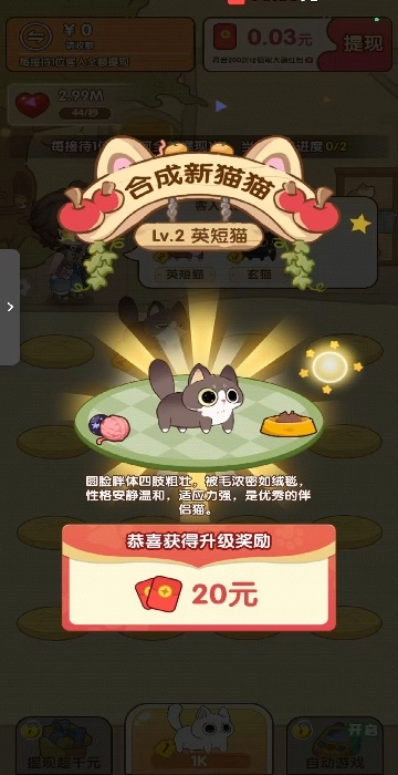 我们设计了离线收益机制,即便你退出游戏,猫咪依然会自动成长,同时积累金币与经验,等你下次登录时就能领取这些收益啦。