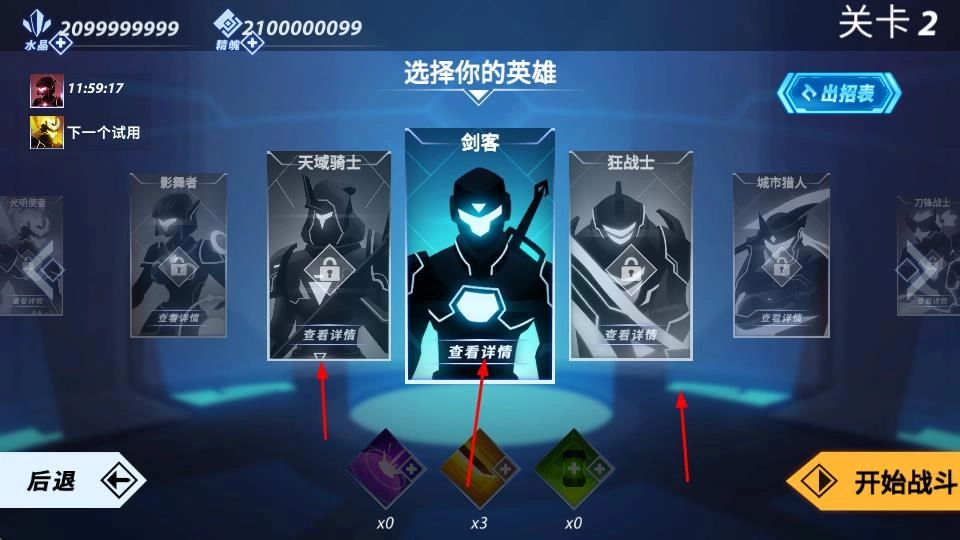 在进入关卡前,你可以先挑选英雄,查看每个英雄的详细信息,了解他们各自的技能特色,之后点击“开始战斗”按钮就能进入关卡了。