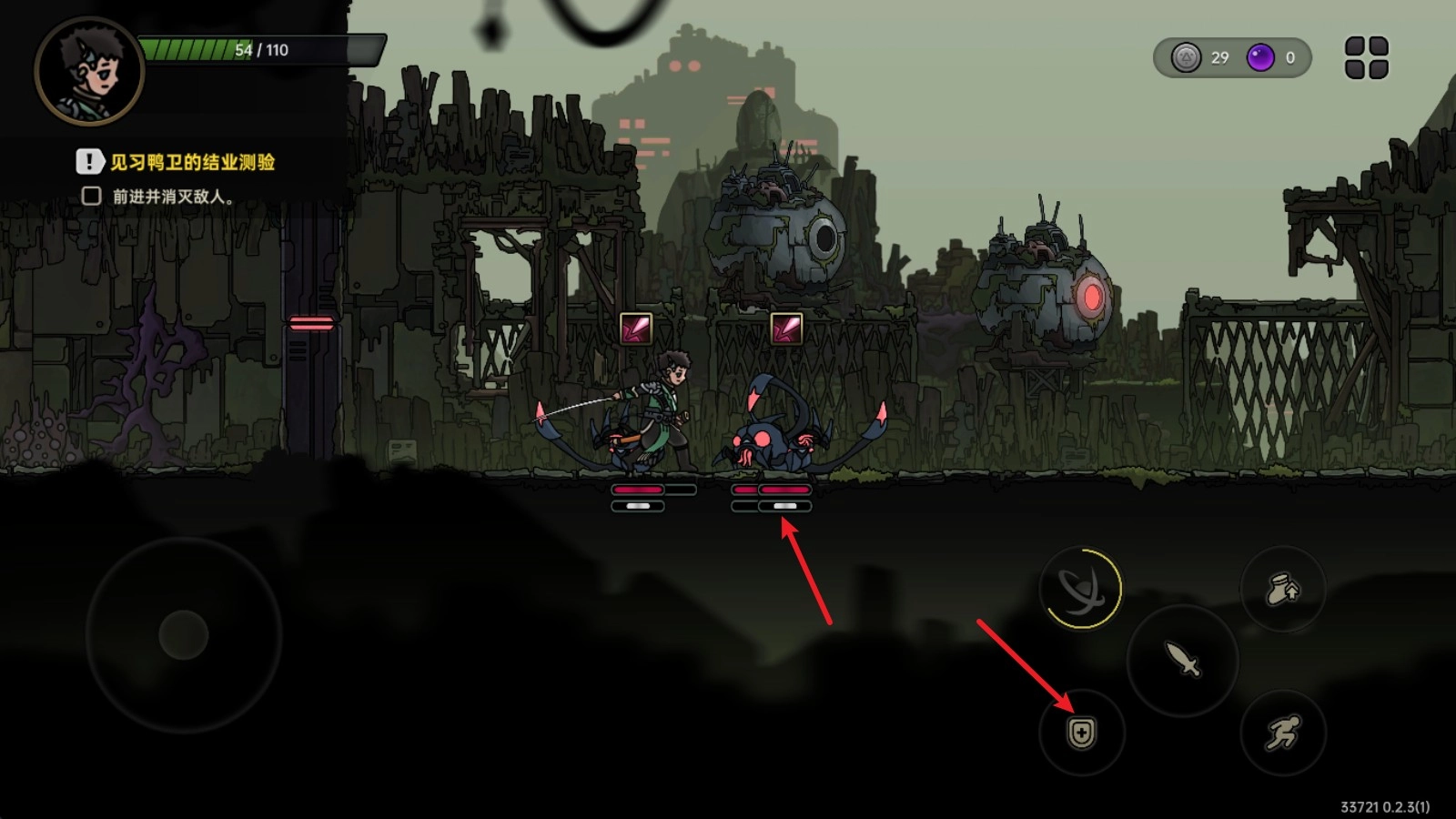 提前察觉敌人的攻击动向,点击右侧的盾牌按钮,就能完成招架动作并发起反击。