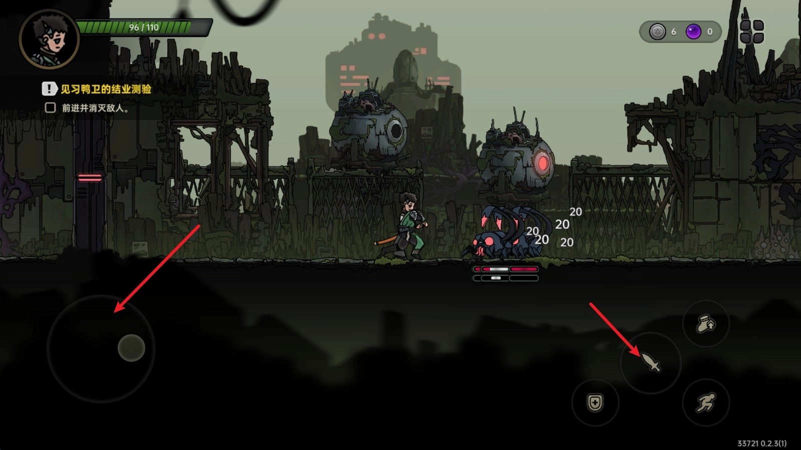 进入游戏后,用左边的摇杆操控角色移动,右边的按键用来发起攻击。