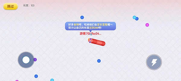4、操作摇杆控制小蛇方向,吞吃小光点成长,成为世界最长蛇蛇