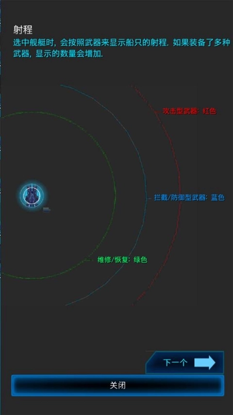 选中舰艇时,会按照武器来显示船只的射程。如果装备了多种武器,显示的数量会增加。