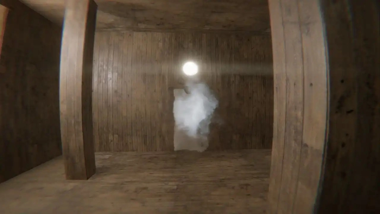 探索到这个房间时,进入那个黑色的洞口,一直到镜头开始抖动、音效随之响起。