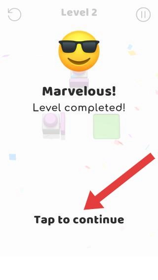 要呈现第2关获胜的状态,玩家需点击Tap-to-continue进入下一关继续游玩,而且越往后难度会越大哦。