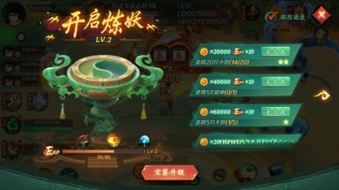 7、提升妖灵宝鉴等级,只要完成指定任务就能升级并获取对应的奖励。