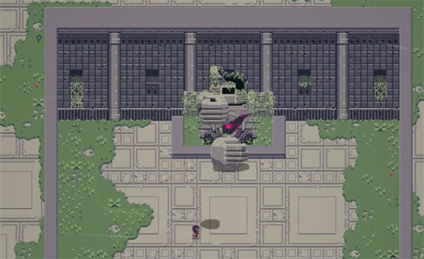 BOSS成功激活后,会先进行几次冲撞,接着发动跳跃压杀。游戏屏幕的四个方向(上下左右)各设有一个点火装置,只有当BOSS压住装置时,中间才会出现火苗,且火苗仅在BOSS压住装置期间存在。角色射出的箭穿过火苗后会附加燃烧效果,这种效果能融化BOSS身上的冰块。当冰块融化、BOSS的大脑暴露出来后,它会持续对主角发动跳跃压杀攻击,此时只要瞄准其落点射箭,就能将其击败。通常这个BOSS会直接朝正下方冲撞,借助反弹机制,BOSS会压住上方的装置,其身上的冰块随之融化,之后拉开距离即可完成击杀,全程无需进行走位操作。