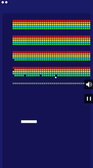 1、玩这款游戏时,玩家要操控一根横条让小白球反弹,以此来摧毁一块块砖块。那怎样才能把所有方块都打完呢?关键技巧是将小白球打到两排方块的中间位置,就像下图展示的那样,这样小白球就不会掉下来,会一直在上方持续反弹!