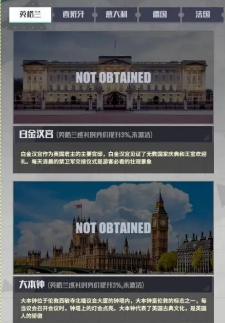 解锁欧陆巡礼里面的名胜,也会对身价有所影响哦