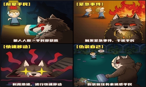 几乎所有房间中都有地道入口,每一个地道都连接着1~2个房间,狼人可以轻松地在这些房间中快速转移。所以,当你发现一个玩家从地道中冒出头来,那他一定就是狼人无疑!