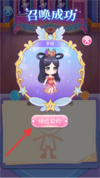 契约缔结步骤:当“召唤成功”的弹窗出现后,找到并点击其中的粉色“缔结契约”按钮,即可确认与罗丽达成契约关系。