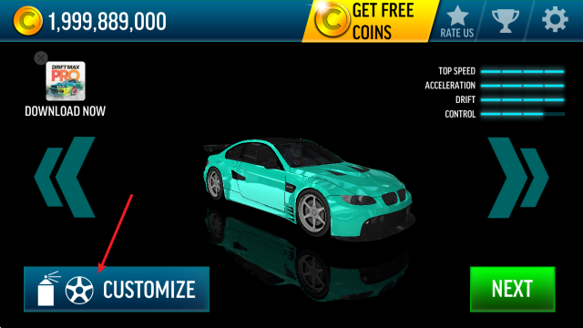 1、在主界面里,你可以用左右箭头来挑选心仪的汽车,选好后点击左下角的“customize”按钮就可以了。