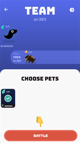 挑选好要出战的宠物,接着点击屏幕下方的“BATTLE”按钮。