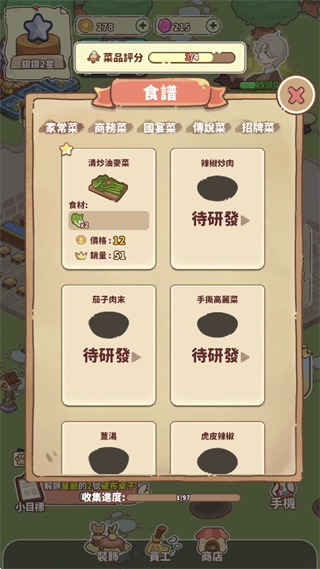 解锁和升级菜品