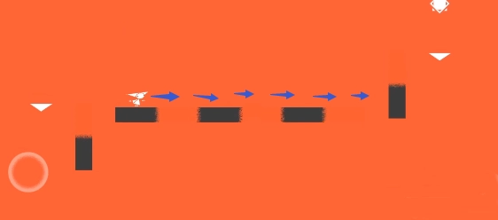 跳过第二个阶梯后,每次跳跃都会导致下坠。必须先垂直向上跳到黑色阶梯,然后再继续前进。