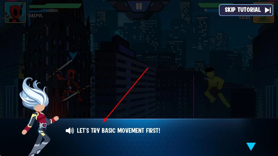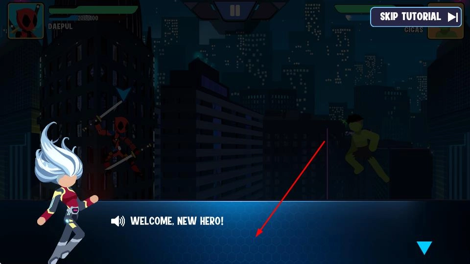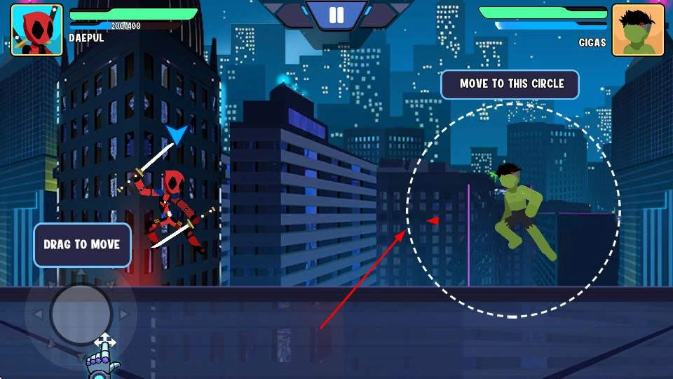 刚进入游戏时,你可以从蜘蛛侠、绿巨人等一众火柴人超级英雄里挑选自己喜欢的角色,先熟悉用虚拟摇杆控制移动、点击技能按钮释放招式这些基础操作,然后就能开启你的战斗之旅了。