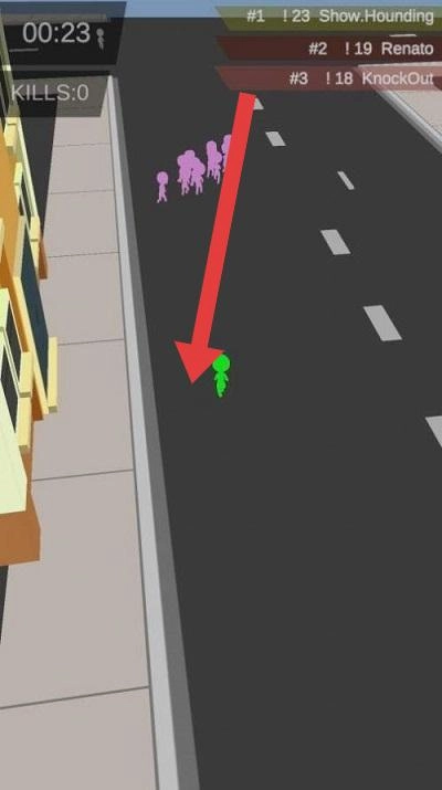 开局发育阶段(对应第一张图),控制绿色小人时,要优先去吸引那些落单的粉色散人,注意避开粉色小人扎堆的大群体,这样才能快速积攒自身的人数。目标是在30秒内最少吸纳5个粉色小人,以此来提升初始的基础规模。
