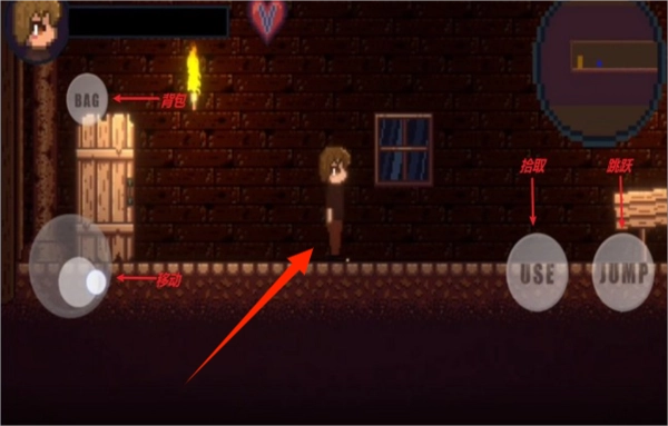 通过操控移动按钮,控制角色在场景中行走;当遇到物品时,点击即可拾取,之后可进入背包查看已获得的道具。