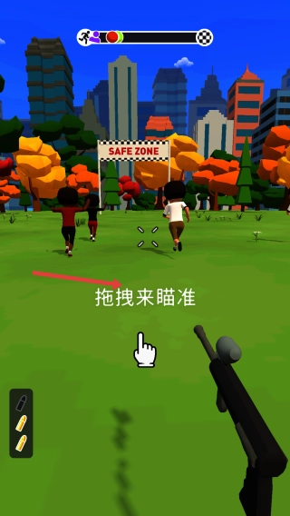 进入对战环节后,可通过拖拽屏幕调整瞄准方向,向敌人发起射击,同时朝着“SAFE ZONE”区域移动推进。只要能坚持存活到最后一刻,或是顺利达成指定目标,就能赢得最终的胜利。