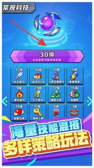 进入【常规科技】页面,点击【30级】领取奖励,解锁或升级对应的技能。