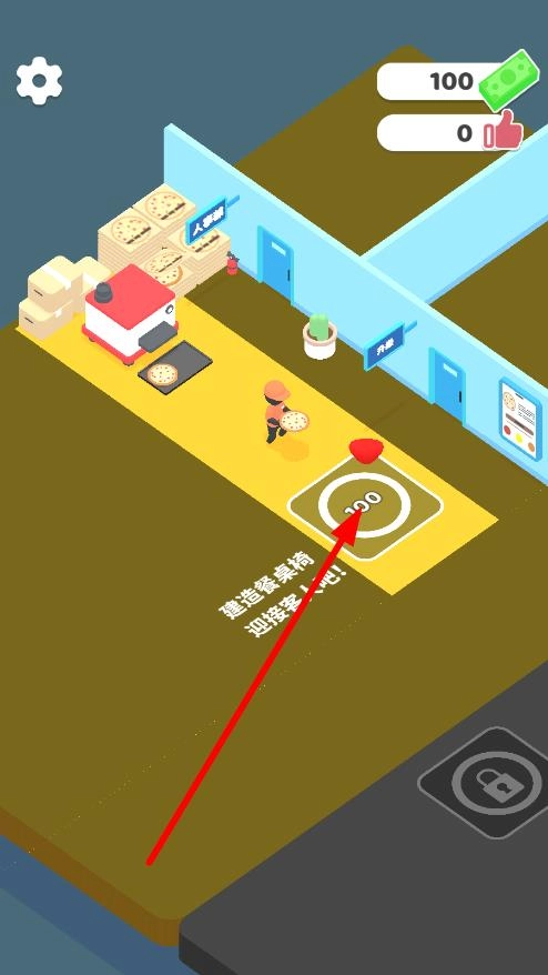 进入游戏后,找到标有“100”的建造区域并点击,花费100金币来建造烹饪台和餐桌椅这两项基础设施,以此开启餐厅的经营。