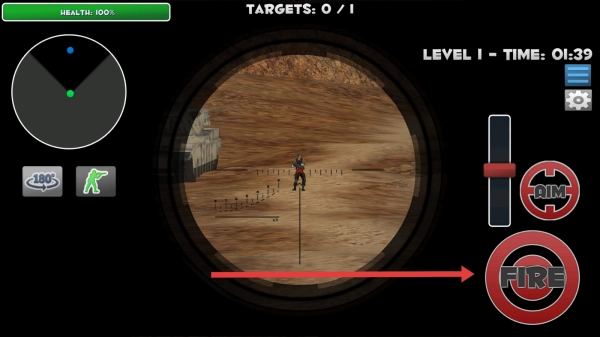 在狙击场景里,得先点击AIM按钮对准目标,之后再点击右边的FIRE按钮,通过射击消灭目标来完成任务。