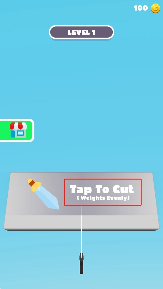点击屏幕即可触发刀具,切断悬挂物体的绳索,开启Level1挑战。请先观察切割区域,确保操作精准后再启动游戏。