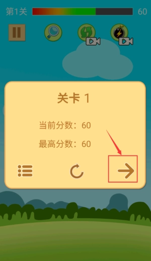 点击箭头指向的右箭头,进入下一关继续挑战。