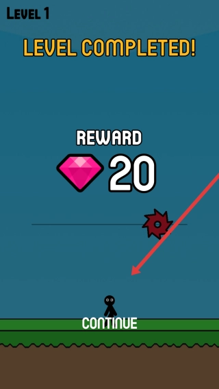 成功通过Level-1后,界面会显示获得20钻石的奖励,点击continue按钮即可进入下一关进行挑战。