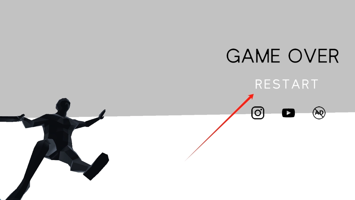 在游戏结束的界面里,按照箭头的提示点击RESTART按钮,就能重新开启游戏,继续进行挑战,推动游戏进度往前发展。