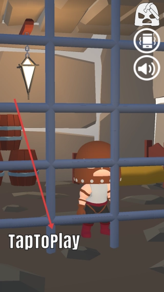 角色被囚禁在监狱场景中,界面上显示着“TapToPlay”字样,点击这个文字所在的区域,就能触发游戏流程,促使角色开始行动。