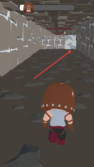 进入通道场景后,控制角色朝着箭头所指的墙壁移动,不断向前推进并进行撞击,设法冲破这处阻碍。