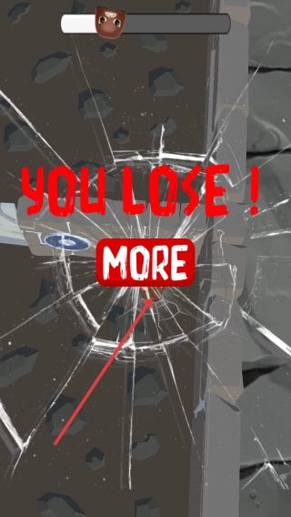 要是撞击没成功,弹出“YOU LOSE”界面的话,点一下红色的MORE按钮,就能重新开始挑战流程了。