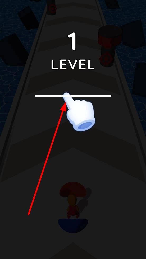 进入游戏后,玩家会出现在黑暗的栈道起点,此时长按屏幕上的指引区域,就能让角色准确踏上彩色盾牌,开启第一关的跑酷挑战。