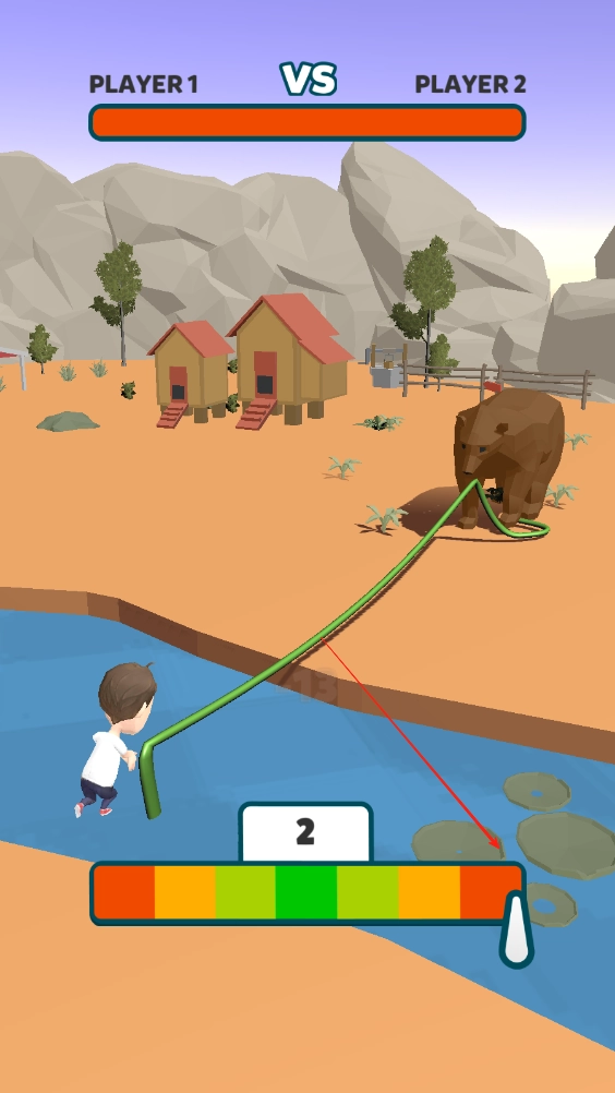 成功把熊拖进湖里就能通关,系统会依据你的表现给出评分和奖励。要是操作时校准到红色区域,不仅会被扣分,还会被熊拽过去。