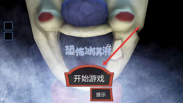 在恐怖冰淇淋的游戏启动界面,按照红色箭头所指的位置,点击开始游戏按钮,就能进入这个充满挑战的游戏世界了。