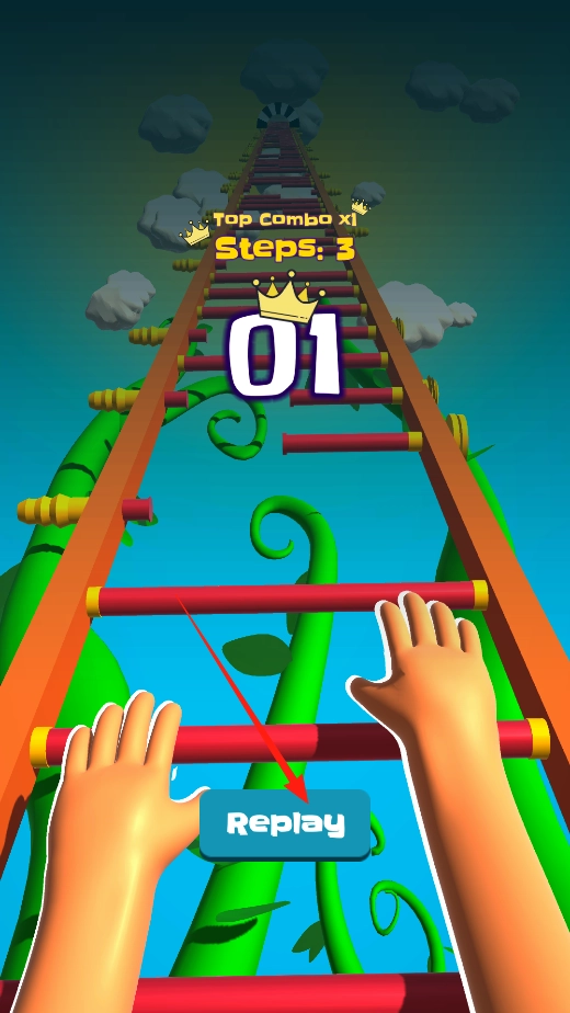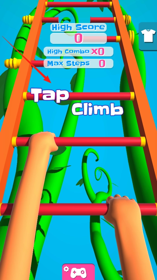 点击Tap Climb即可开启攀爬模式,通过双手交替向上移动的方式,挑战高空梯子,系统会自动记录分数,让你体验独特的攀爬开局机制。