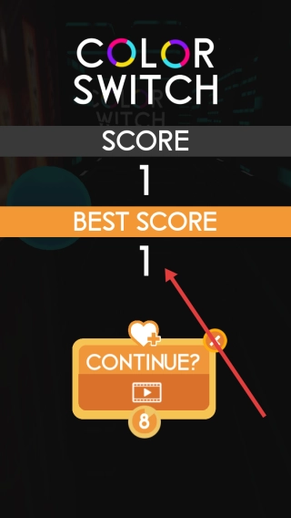 碰撞异色则结算得分,记录BEST SCORE,点CONTINUE或重开,反复练习提升反应与通关分数。